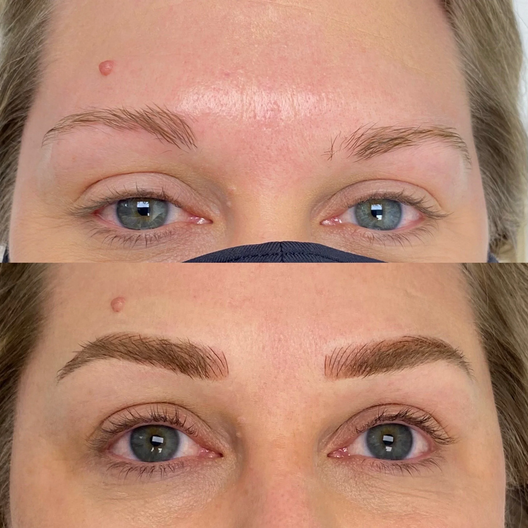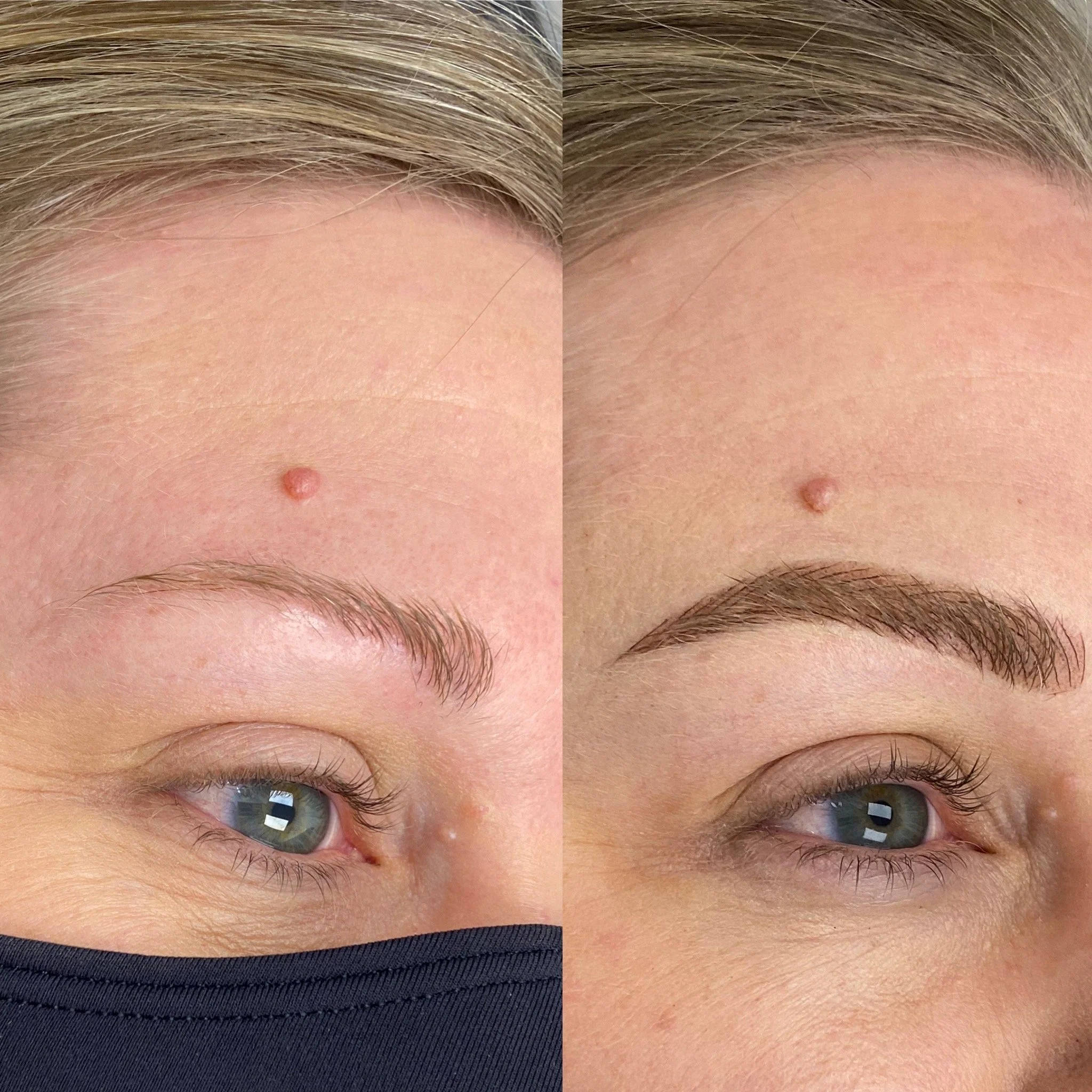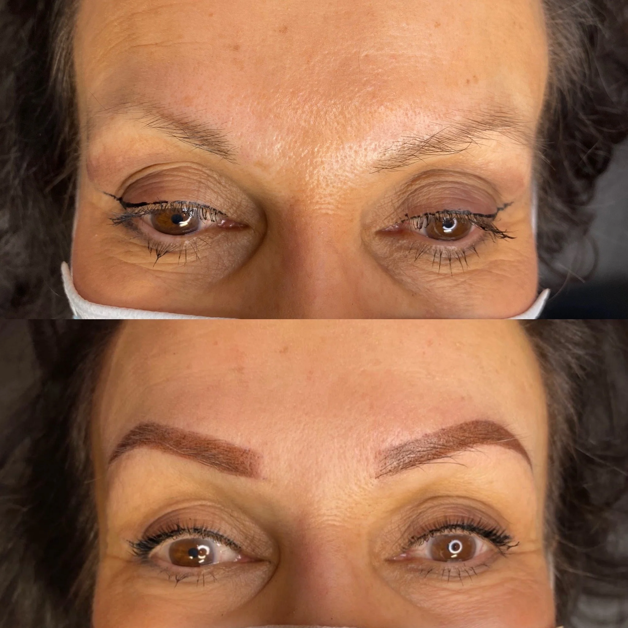 Are the semi-permanent art of combining two techniques - Microblading & machine shading. Hybrid brows create fine, nano-sized hair strokes using a Microblade. These strategically placed hair strokes then are given added depth through machine shading.
