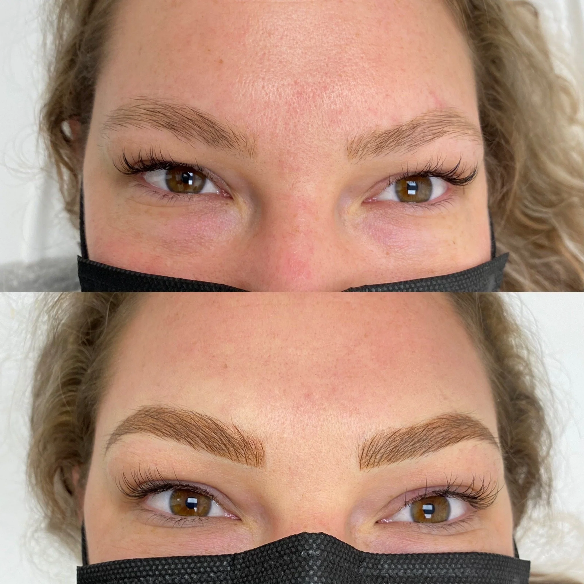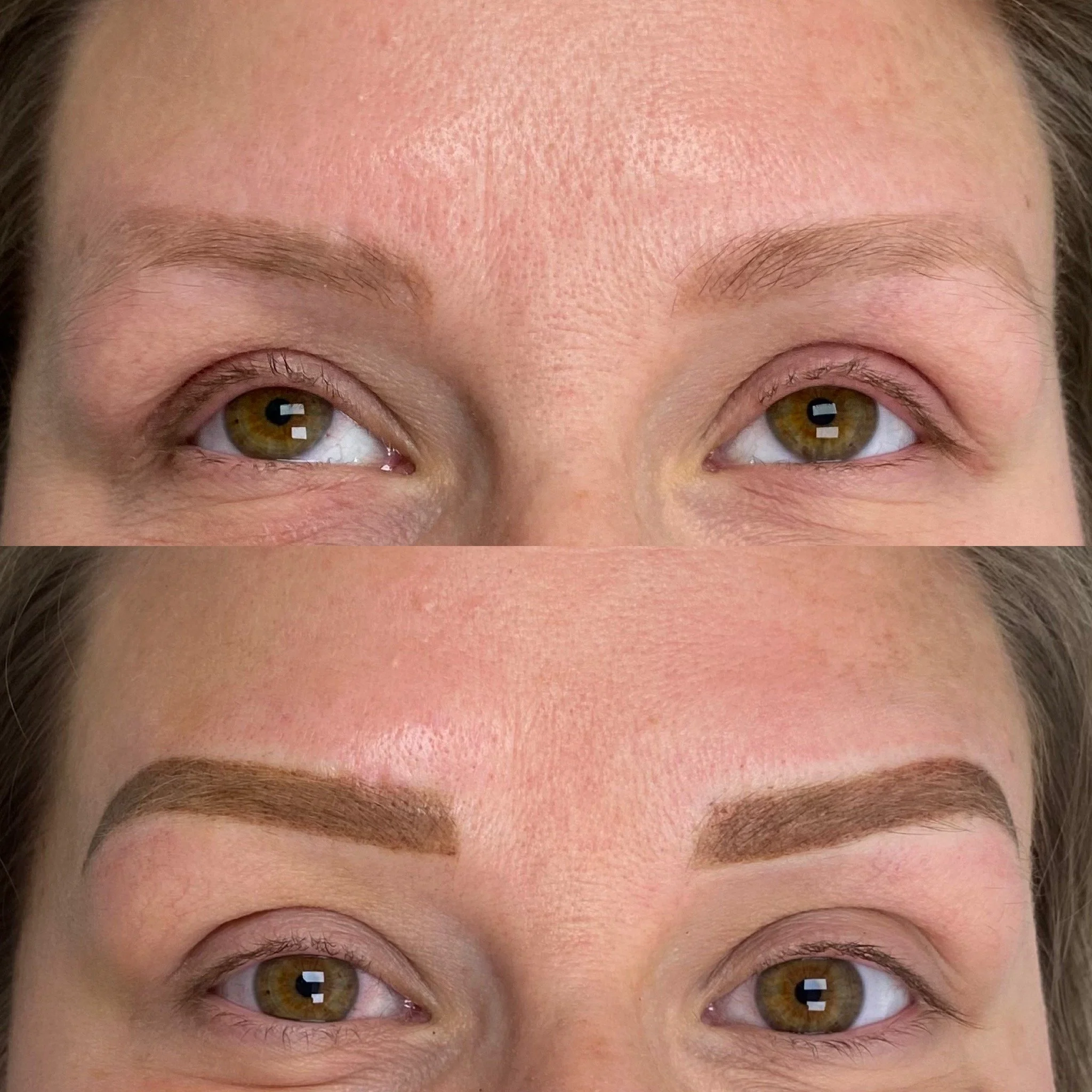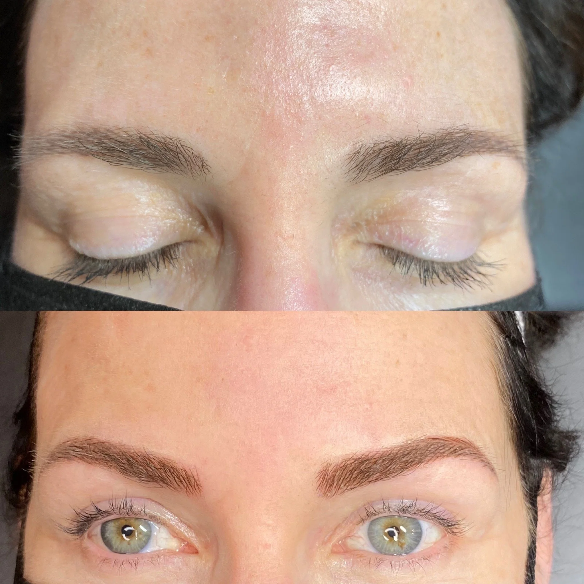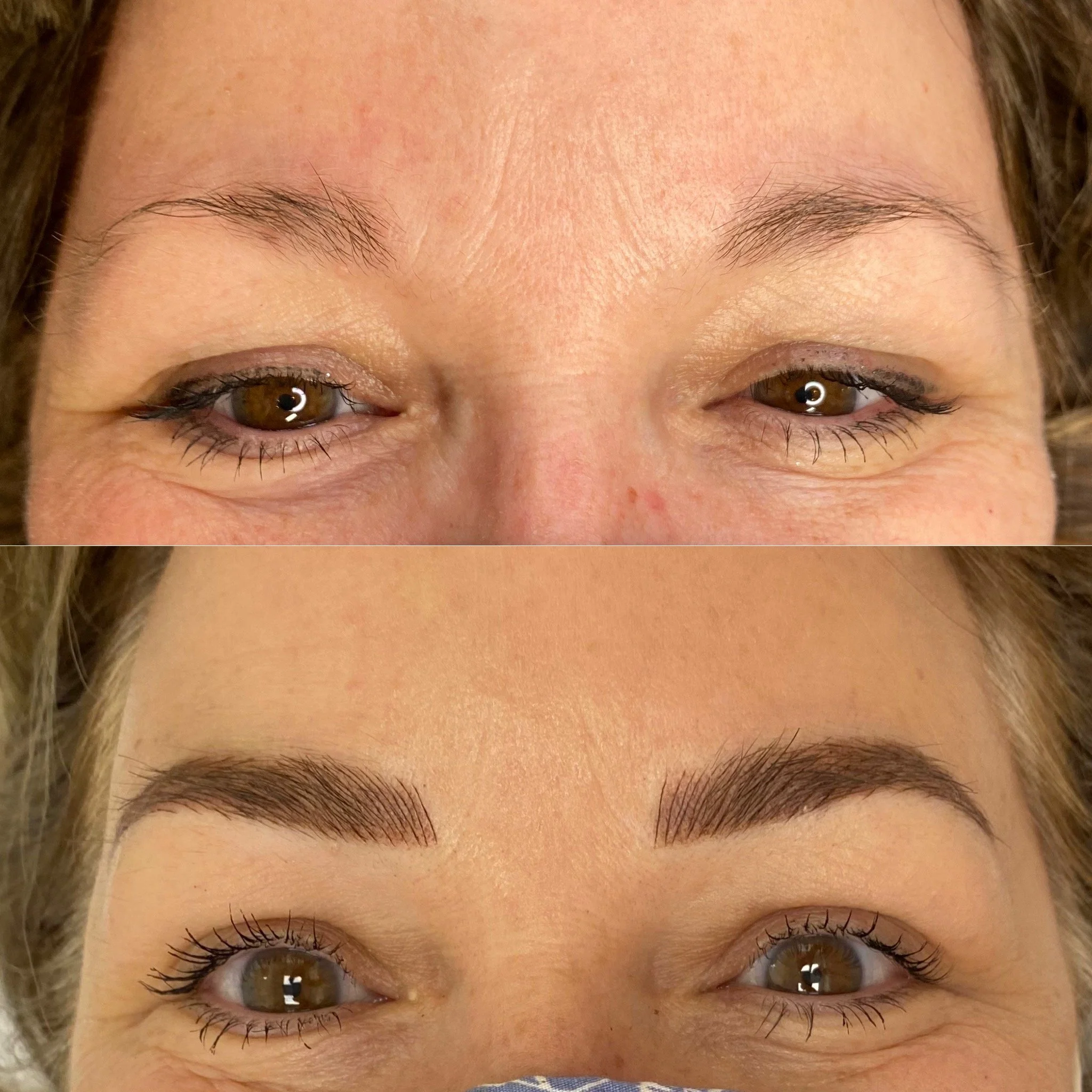 Are the semi-permanent art of combining two techniques - Microblading & machine shading. Hybrid brows create fine, nano-sized hair strokes using a Microblade. These strategically placed hair strokes then are given added depth through machine shading.